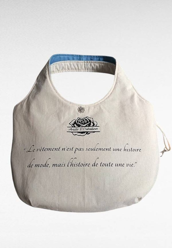 Ce sac de la collection AISANCE introduit une signature plus narrative à travers sa doublure : le logo accompagné d'un texte porteur de sens, véritable maxime de la marque.